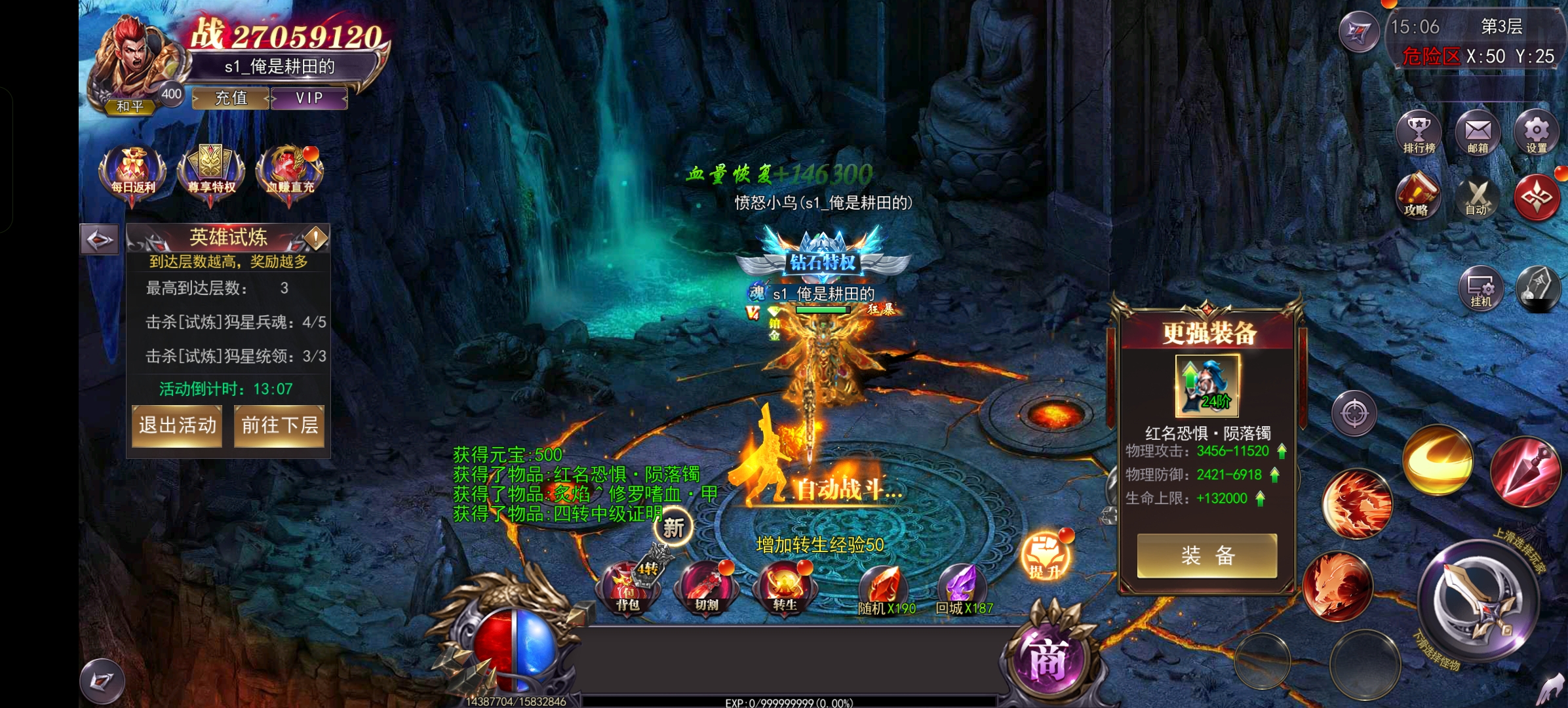 🎮 进服即送 百万元宝礼包 · 技能强化券 · 顶级神装称号 · 自动拾取回收