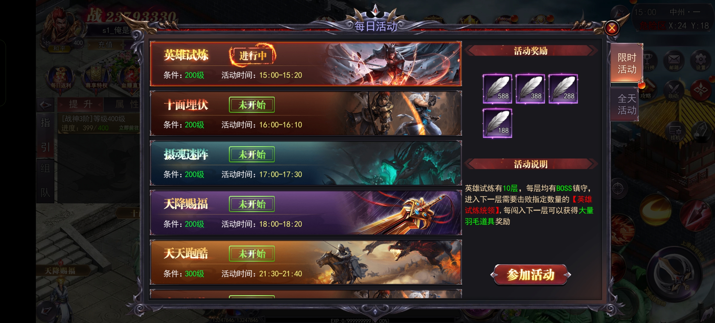 | 皇城战 | 每周三-周六 20:00-21:00 |